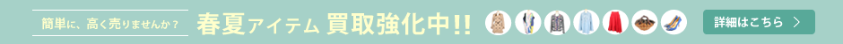 「そういえば最近出番がないな」「クローゼット整理しようかな」「断捨離しよう」と思い付いた時が買取をご利用いただくベストタイミングです!そのタイミングを逃してしまうと、結局またクローゼットに眠らせることとなり、眠らせている間にもお品物の価値はどんどん下がってしまいます。思いついた「今」のタイミングでぜひお買取りをご利用ください!
