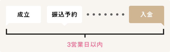 お客様の承認が確認できた後、原則として最短で金融機関の翌営業日~3営業日以内にご入金致します。