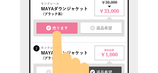 マイページから「売る」「売らない」を1点ずつ選択するだけです。