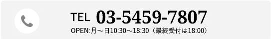 【営業時間】月~日:10:30~18:30(最終受付は18:00)