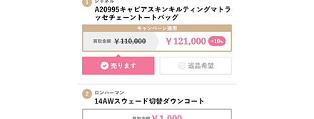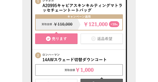 マイページから「売る」「売らない」を1点ずつ選択するだけです。